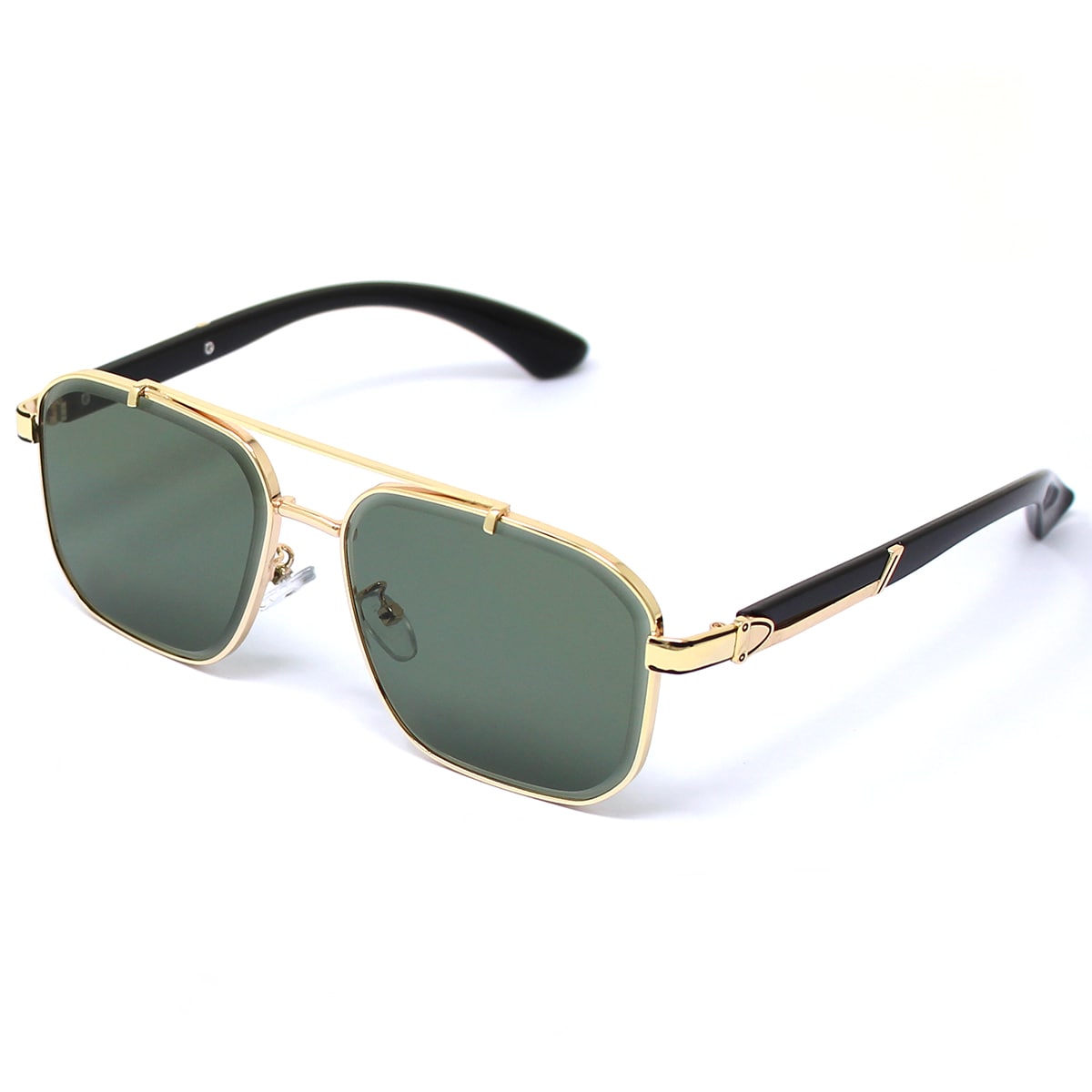 Sive, montatura grande e rettangolare con doppio ponte. Aste in policarbonato ed in parte in metallo, naselli gommati regolabili. Le lenti presentano una particolare incisione lunga tutto il perimetro. Lenti certificate UV400.